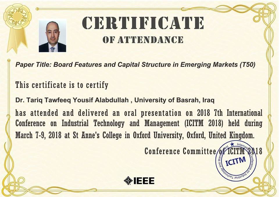 An academic selection at university of basrah as a member of Editorial Board of the 3rd International Conference on Innovation and Entrepreneurship Management ...