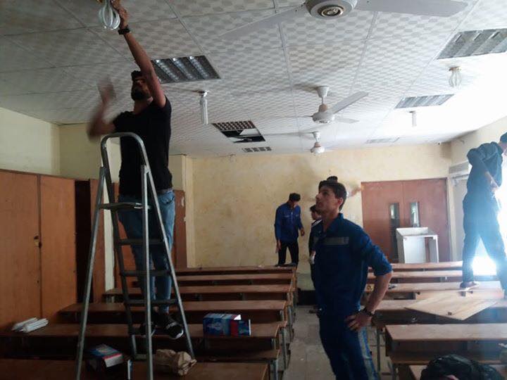 Students at university of basrah start maintenance of some classrooms within the voluntary work program ...