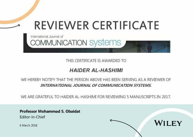 An academic at university of basrah received a Certificate of appreciation from an international magazine ...