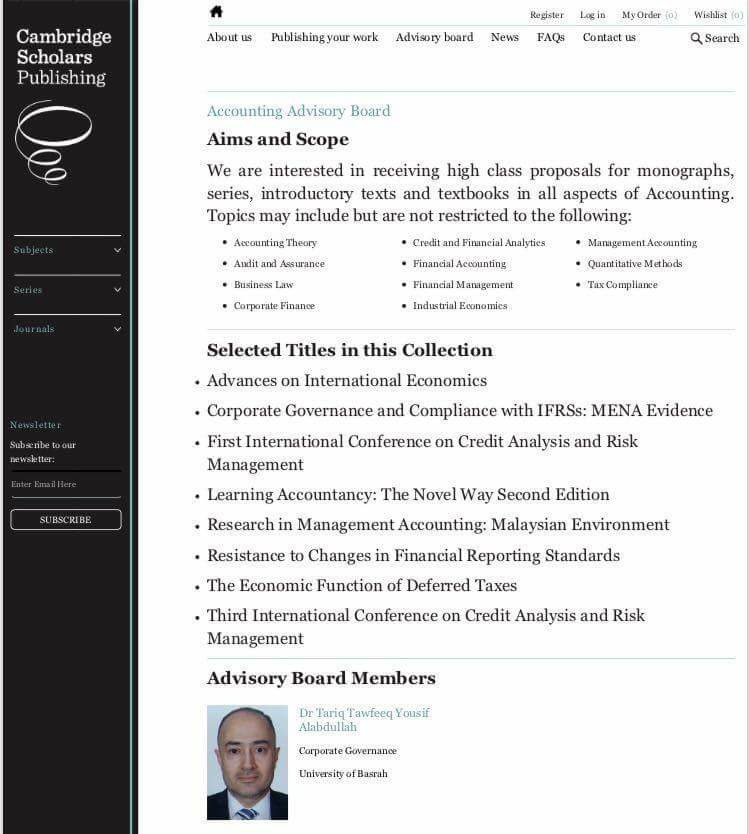 The academic selection at university of basrah as a Member of the Advisory Board, member of the Editorial Board and a scientific evaluator in Scholars Cambridge University bookstore in Britain. ...