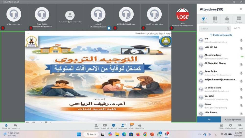 University of Basrah Organizes an Online Workshop on Educational Guidance as an Approach to Preventing Behavioral Deviations...