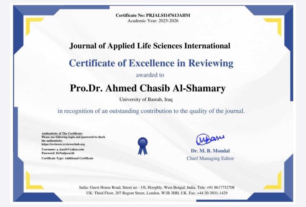 University of Basrah Faculty Member Appointed as Scientific Reviewer for International Journal...